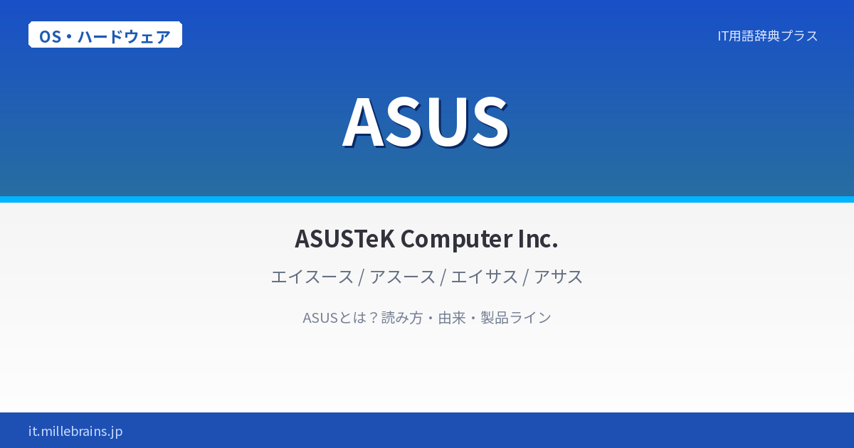 A: エイスース(AY-soos)です。2012年10月にASUS本社が公式読み方を統一しました。かつての「アスース」は非推奨です。